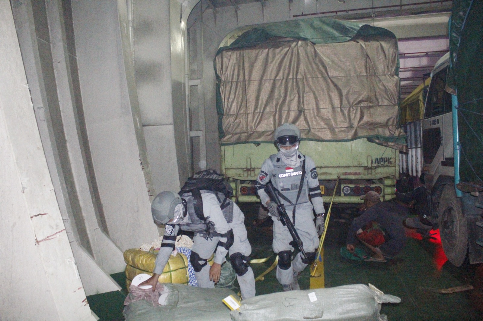 Setelah disetujui, Komandan KN. Pulau Marore-322 Letkol Bakamla Adi Poetra Sitanggang, segera meluncurkan Tim Visit Board Search and Seizure (VBSS) guna melakukan pemeriksaan. Pada pukul 16.44 WIB, Tim VBSS berhasil on board di kapal tersebut. Berdasarkan pemeriksaan awal, kapal tersebut mengangkut 17 penumpang (termasuk Nahkoda) dengan muatan 18 truk yang berangkat dari Pontianak menuju Patimban.