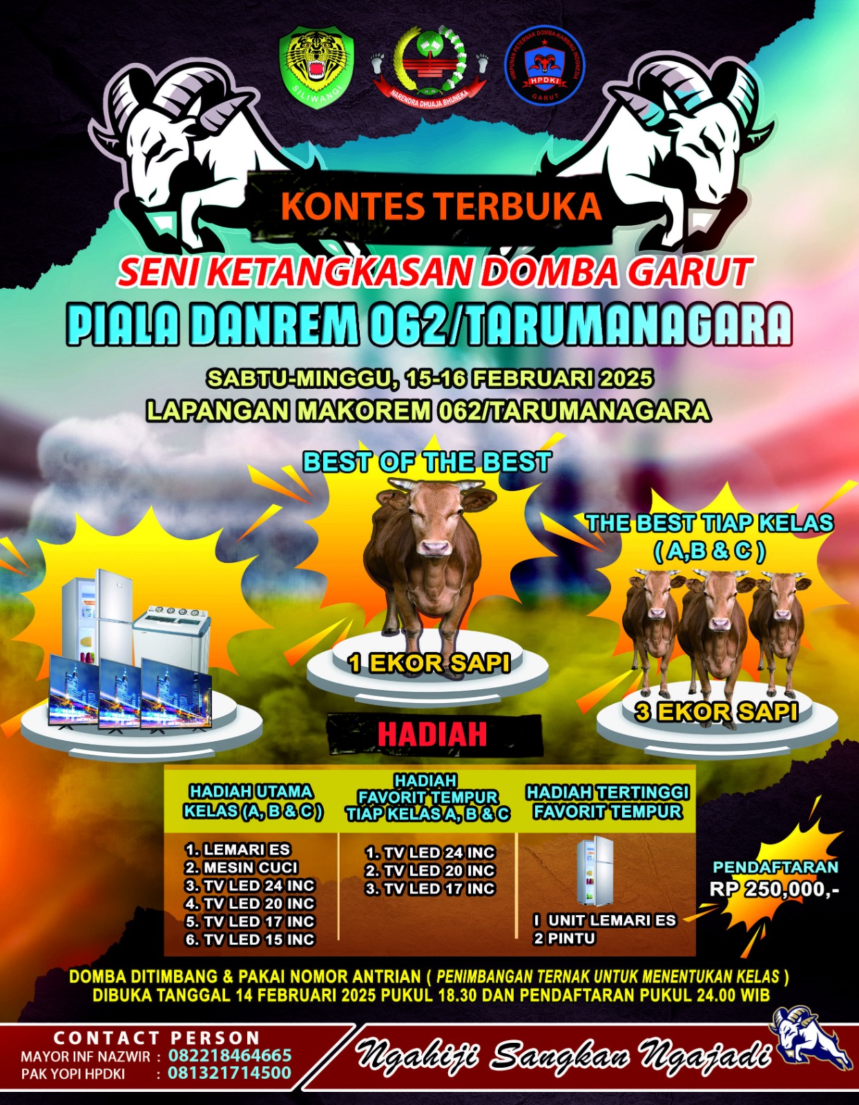 Kontes ini menjadi kesempatan emas bagi para pecinta Domba Garut untuk menunjukkan kualitas terbaik ternaknya sekaligus mempererat persaudaraan dalam komunitas pecinta domba. Jangan lewatkan kesempatan ini. Mari bersama-sama menjaga, membanggakan, dan melestarikan warisan budaya bangsa.