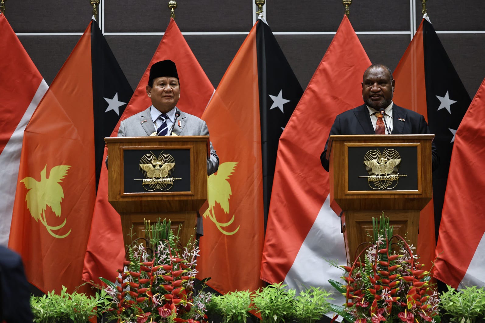Setibanya di bandara internasional Port Moresby Menhan Prabowo yang mengenakan jas berwarna abu-abu dengan peci hitam langsung disambut hangat oleh PM James Marape. Kunjungan Menhan Prabowo ke PNG ini, salah satunya untuk memenuhi janji kepada PM Marape saat kunjungan ke Kemhan (15/7). Saat itu, Menhan Prabowo menyatakan keinginan untuk segera berkunjung ke Papua Nugini.