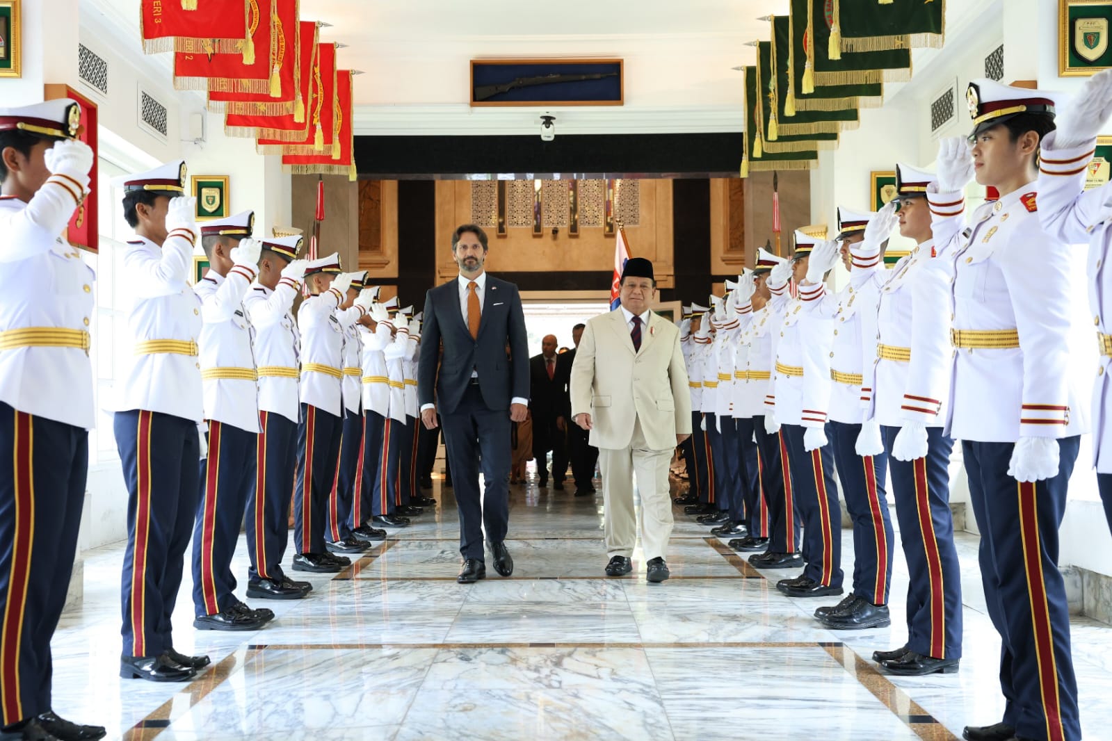 Jakarta – Menteri Pertahanan RI Prabowo Subianto menerima kunjungan kehormatan dari Deputi Perdana Menteri dan Menteri Pertahanan Republik Slovakia H.E. Mr. Robert Kaliňák, di Kementerian Pertahanan, Jakarta, pada Kamis (10/10/2024).