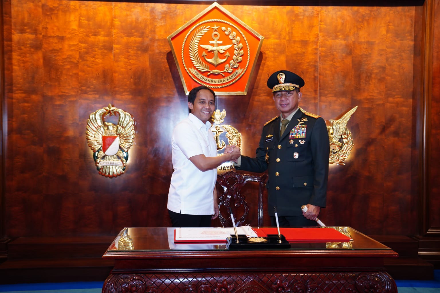 “Pada hari ini Mabes TNI kedatangan Menteri Kehutanan dan rombongan dimana tujuannya yang pertama silaturahmi, kemudian yang kedua akan menjalin kerjasama seperti yang disampaikan Menteri Kehutanan ada hutan sejumlah 125 juta hektar yang harus kita jaga agar tidak diambil oleh orang-orang yang tidak bertanggung jawab,” ungkapnya.